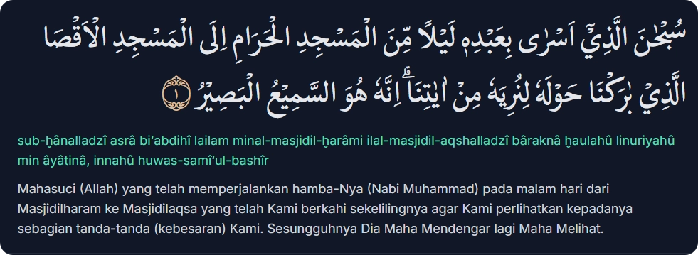 Masjid Al Aqsa yang merupakan masjid suci umat Islam yang memang pernah menjadi kiblat pertama umat Islam ini disebutkan dalam Al Qur’an pada Surah Al Isra ayat 1.